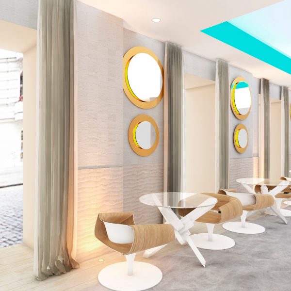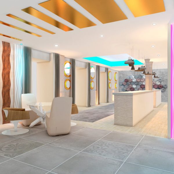 Fue un honor para nosotros que nos pidiera nuestro buen amigo y cliente, propietario de esta franquicia una propuesta para su nuevo local. Decidimos una línea más sobria y simple, dejando ver materiales moldeables y texturas arenosas en barra, latón, placas 3D, retroiluminación y baños de luz RGB, cortinas y mobiliario contemporáneo, resina epoxi y porcelánicos modernos además de detalles decorativos bien seleccionados componen este espacio de última generación.