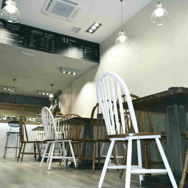 En la céntrica calle granadina Gran vía, tuvimos el placer de realizar el diseño y ejecución de este precioso local. Un diseño low cost adaptado totalmente a las necesidades que nos pidió nuestro cliente. Suelos de tablón de madera con patinas, zócalos dispares, recuperación de elementos estructurales tales como las columnas y vigas en la parte superior. Materiales imitación madera y porcelánicos arenosos en la barra y mobiliario clásico e industrial. Un diseño ecléctico de gran gusto. Nuestros queridos clientes quedaron inmensamente satisfechos con nuestro trabajo.